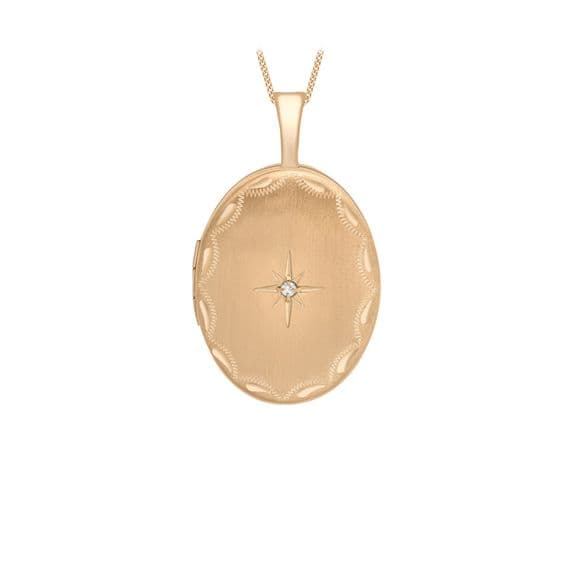 9ct Rose Gold 0.01ct Diamond Set 16mm x 25mm Etched Oval Locket