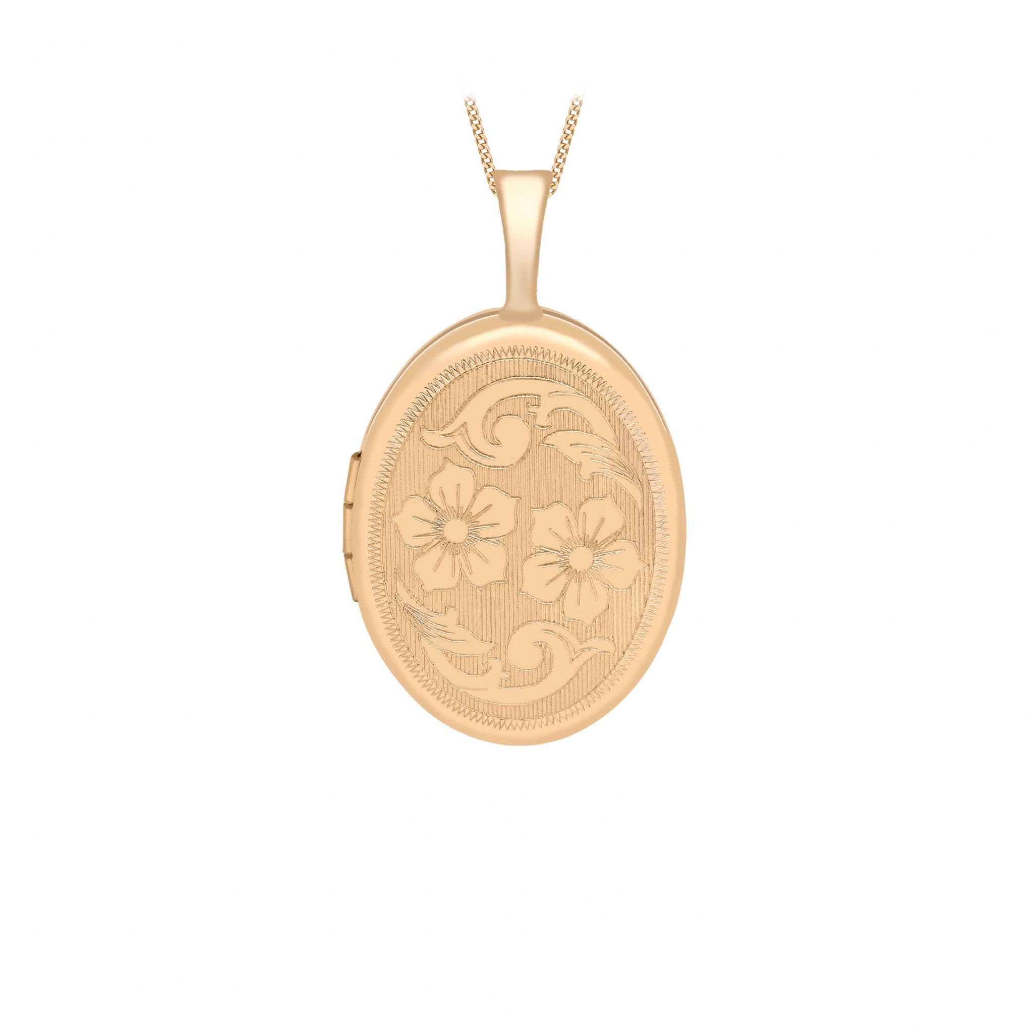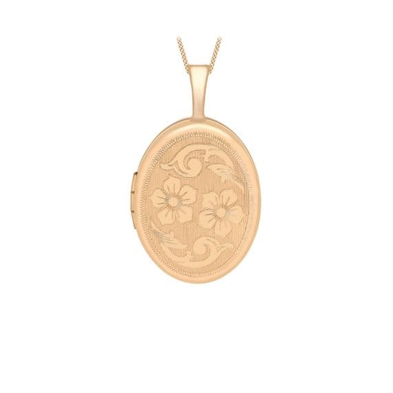 9ct Rose Gold 16mm x 25mm Etched Flower-Detail Oval Locket