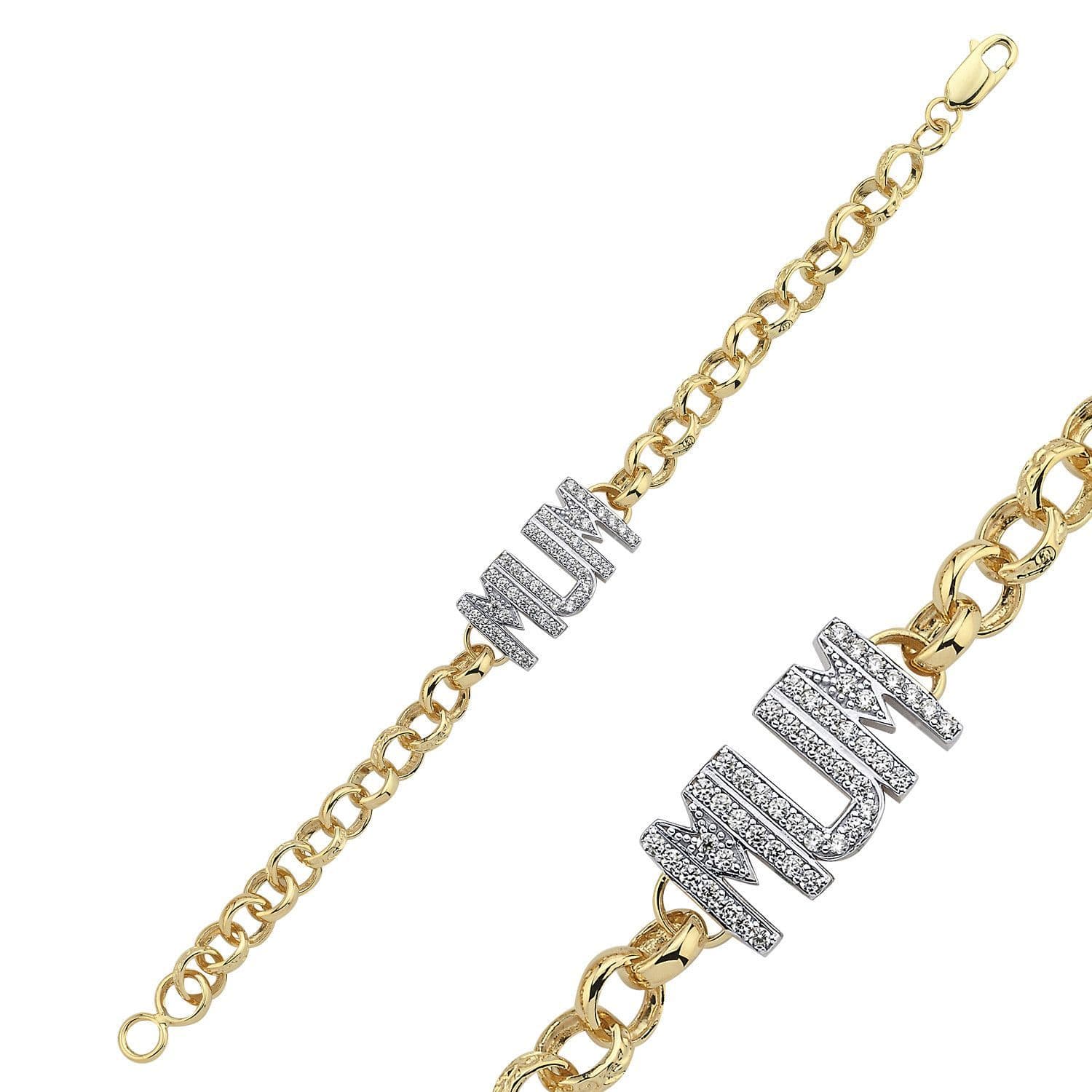 9ct Yellow Gold Cubic Zirconia Mum Belcher Bracelet