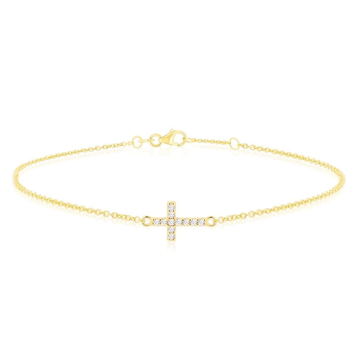 9ct Yellow Gold CZ Sideways Cross Bracelet