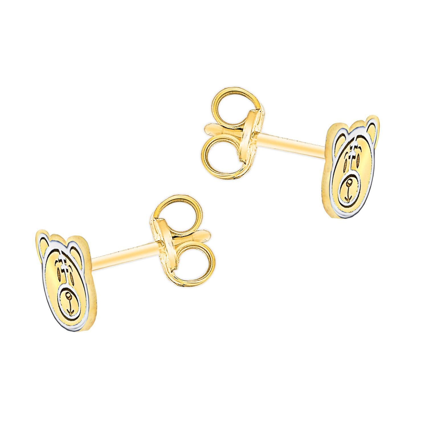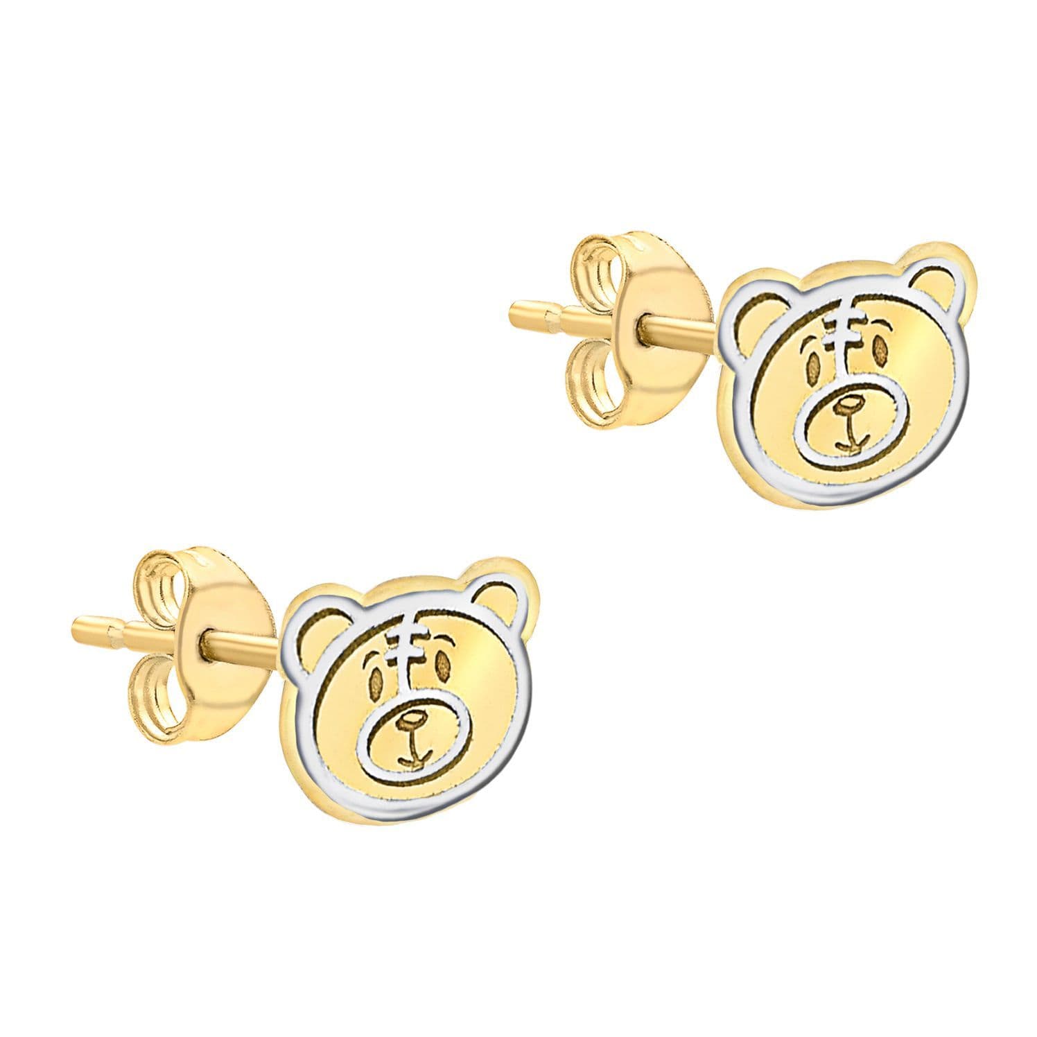Children's 9ct 2-Colour Gold 7mm x 6mm Teddy-Bear-Face Stud Earrings