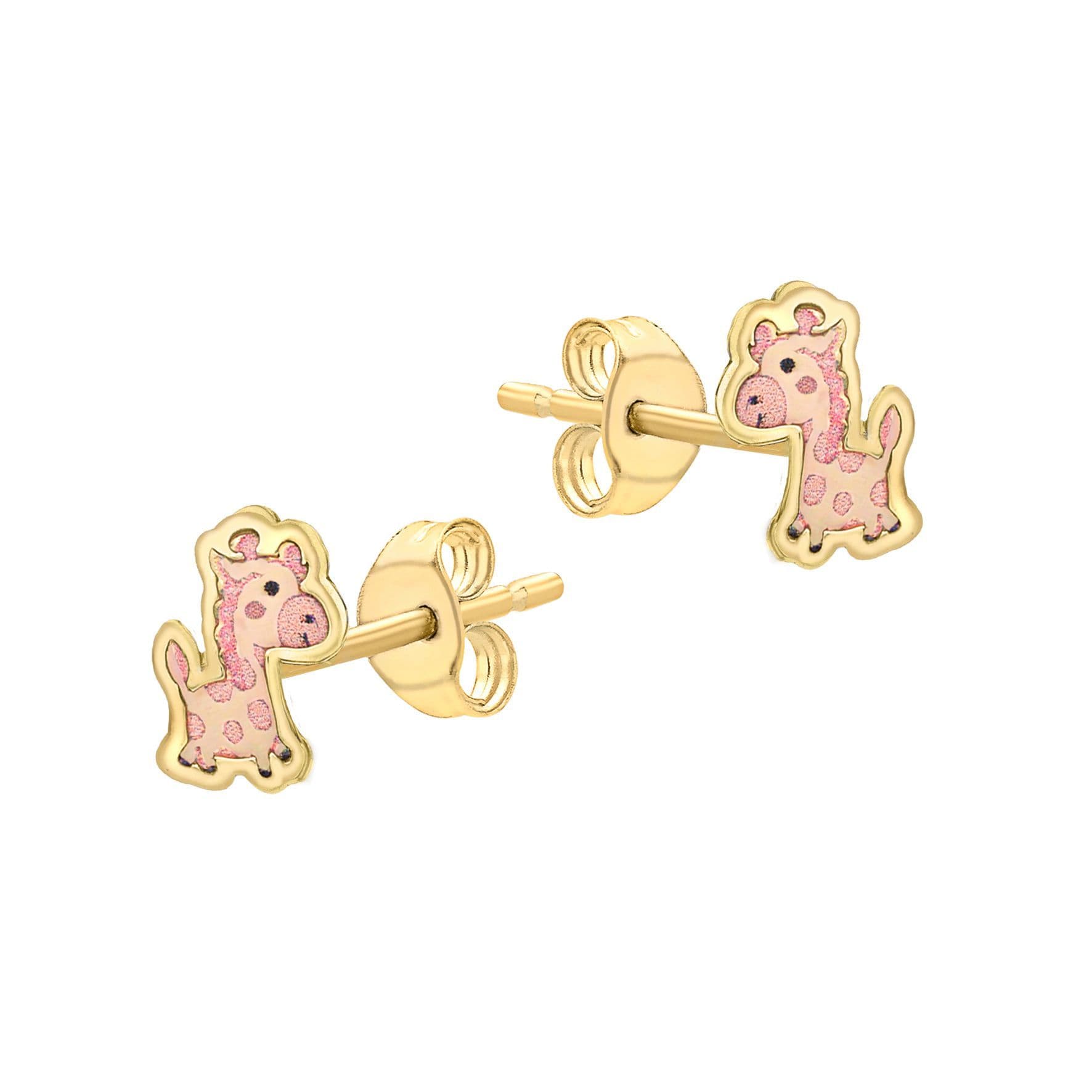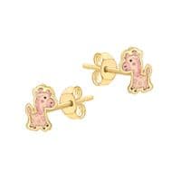 Childrens 9ct Yellow Gold 6mm x 7mm Pink Enamel Pony Stud Earrings